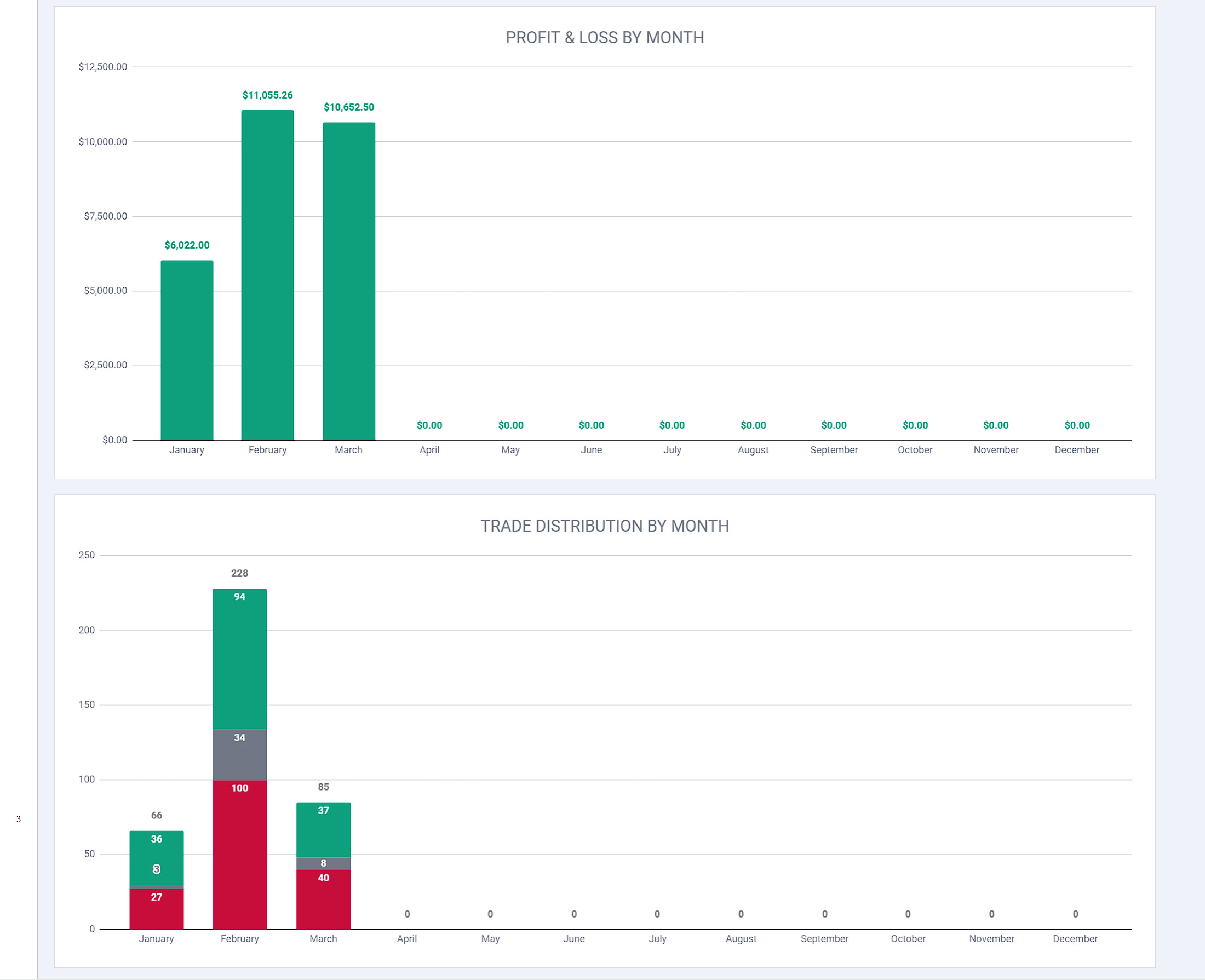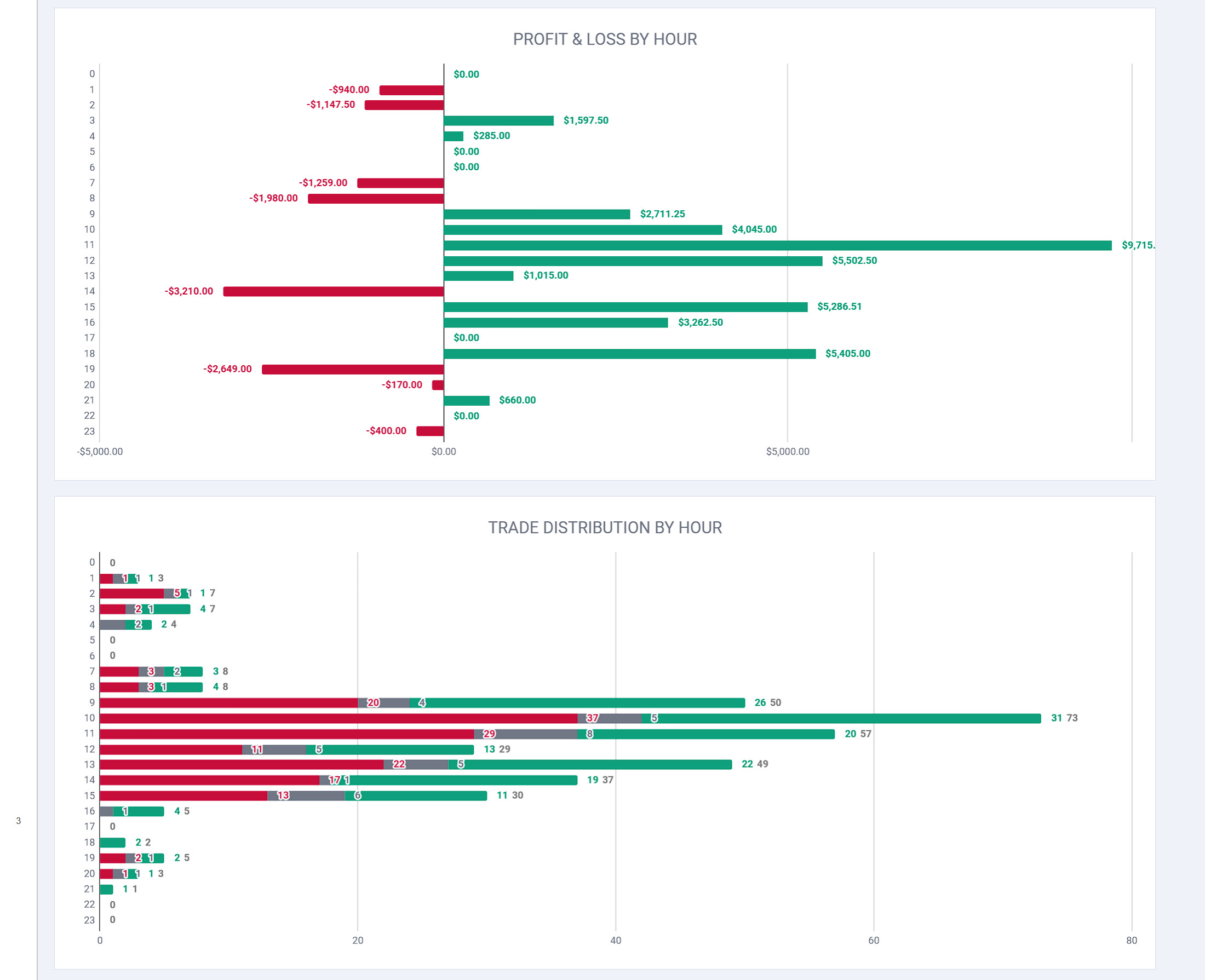 The best way to understand the data you’ve collected is to convert it into a visual format. Use 50+ ready-made charts to perform an in-depth analysis of your trading strategy.