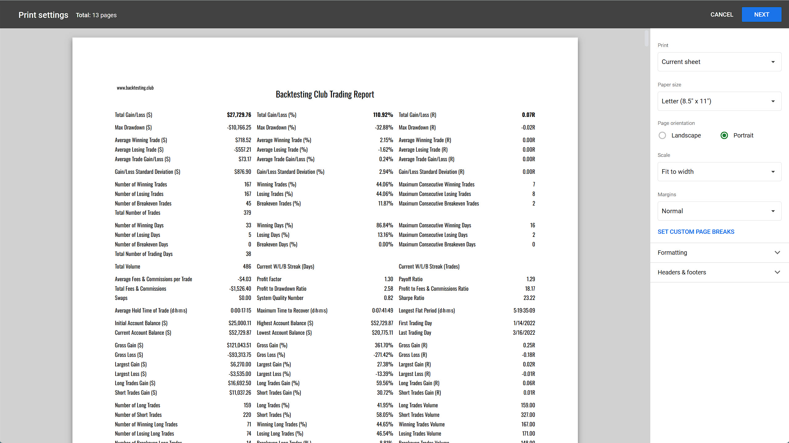 Spreadsheets offer unlimited possibilities for analyzing your data. Use the Backtesting Club trading journal as a default base and expand it to meet your own specific needs.