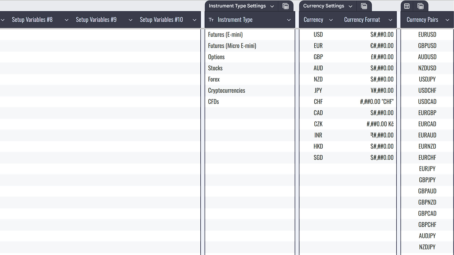 If you work with instruments quoted in different currencies, you need a solution for converting realized profits and losses to the currency of your trading account. Backtesting Club trading journal allows you to automatically load EOD currency rates from Google Finance or use your own.