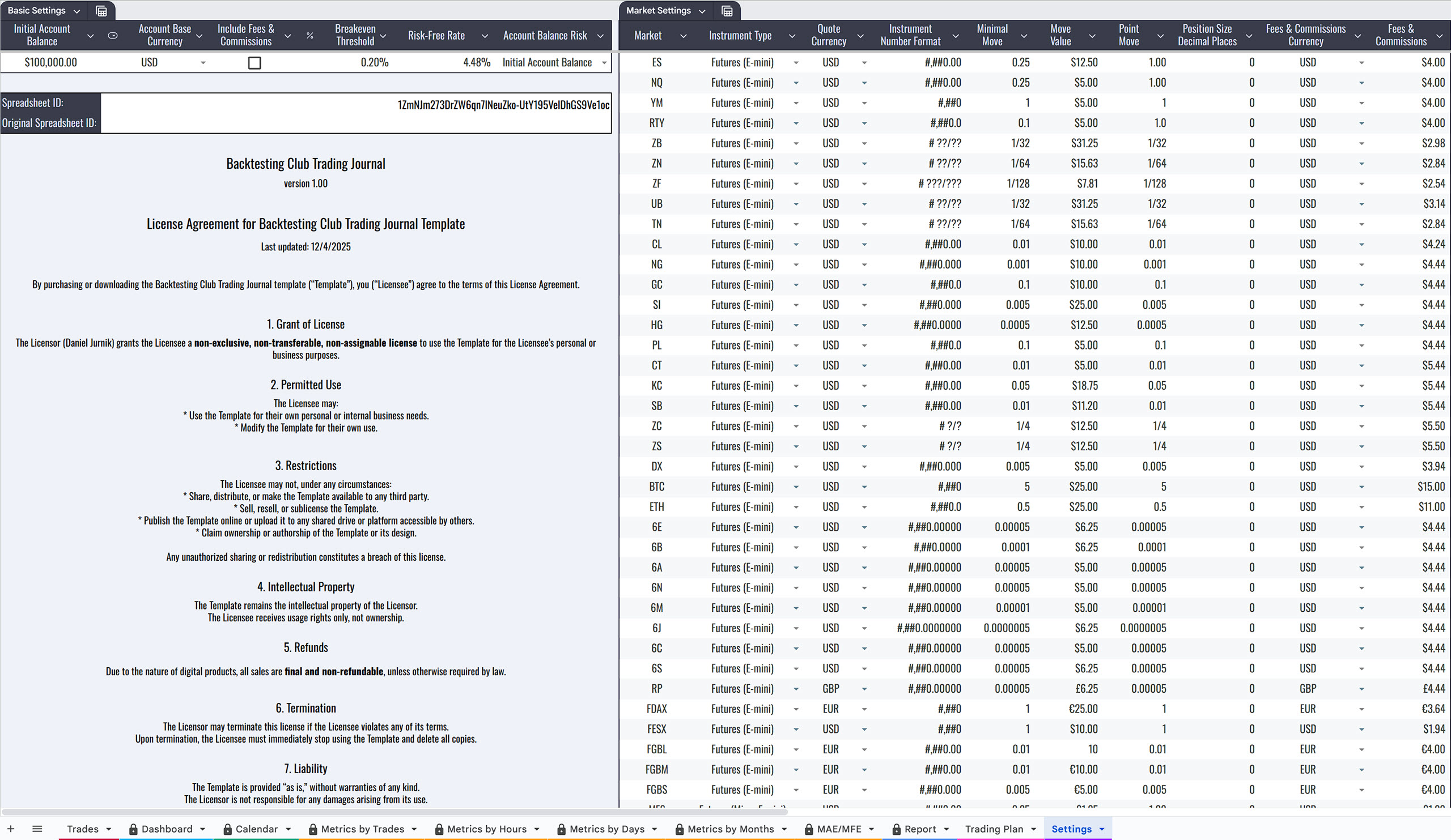 The Backtesting Club trading journal is a universal, highly customizable Google Sheets template with many smart features that will help you easily record and analyze your trades.