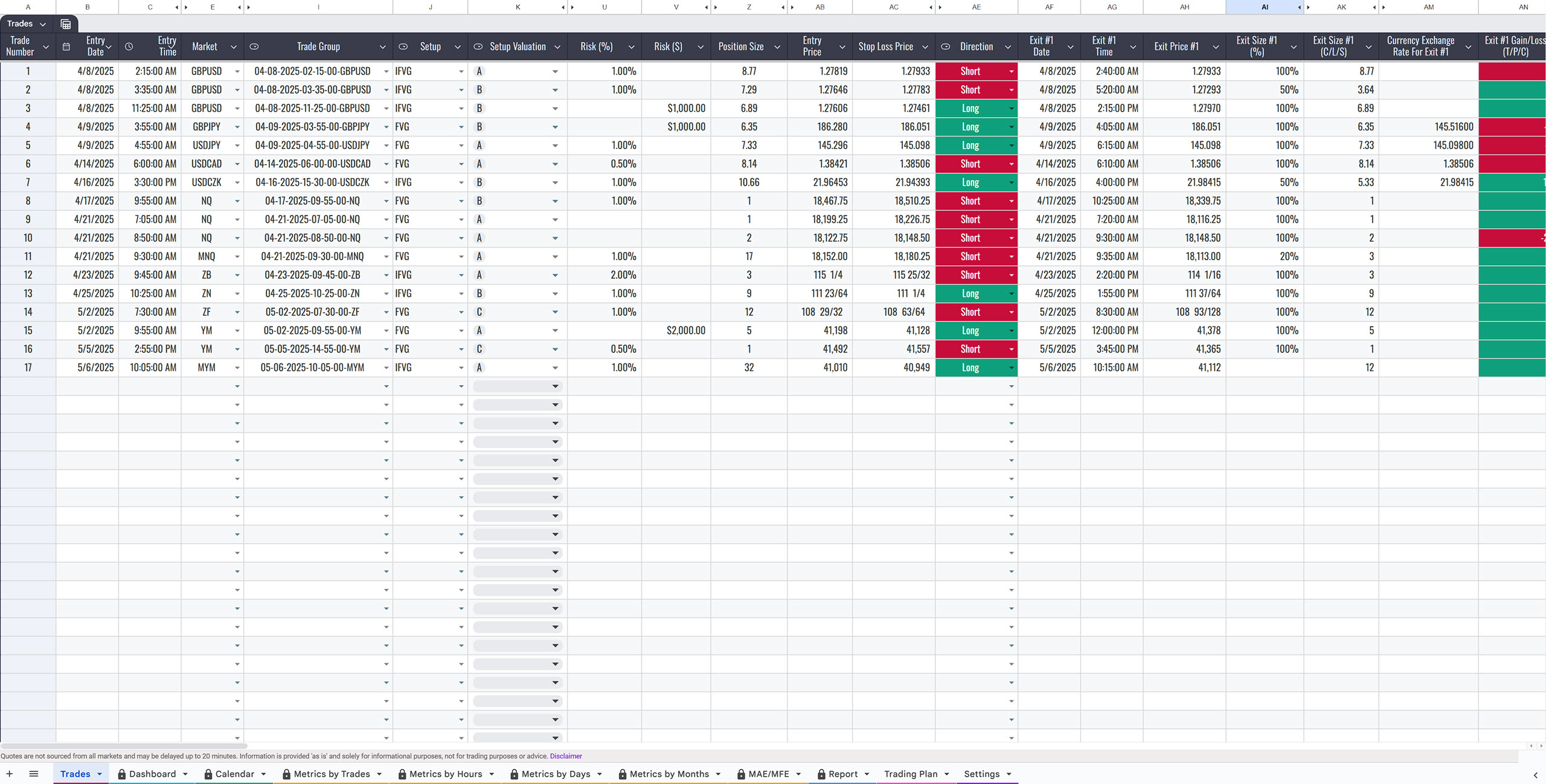 Maintaining a traditional online trading journal requires regular monthly or annual payments. On the other hand, purchasing a Google Sheets template only involves a one-time payment, and you can then use it for as long as you need.