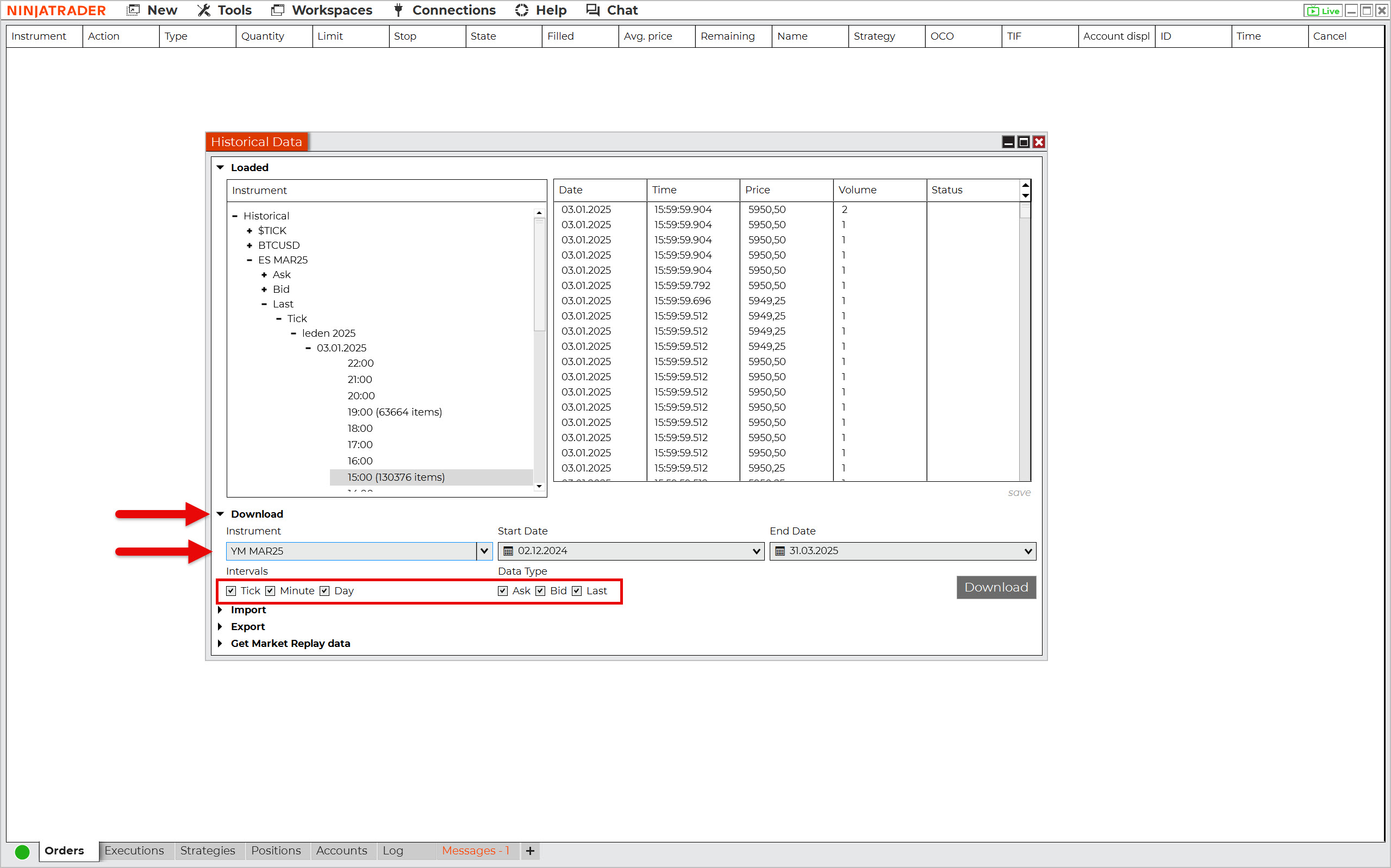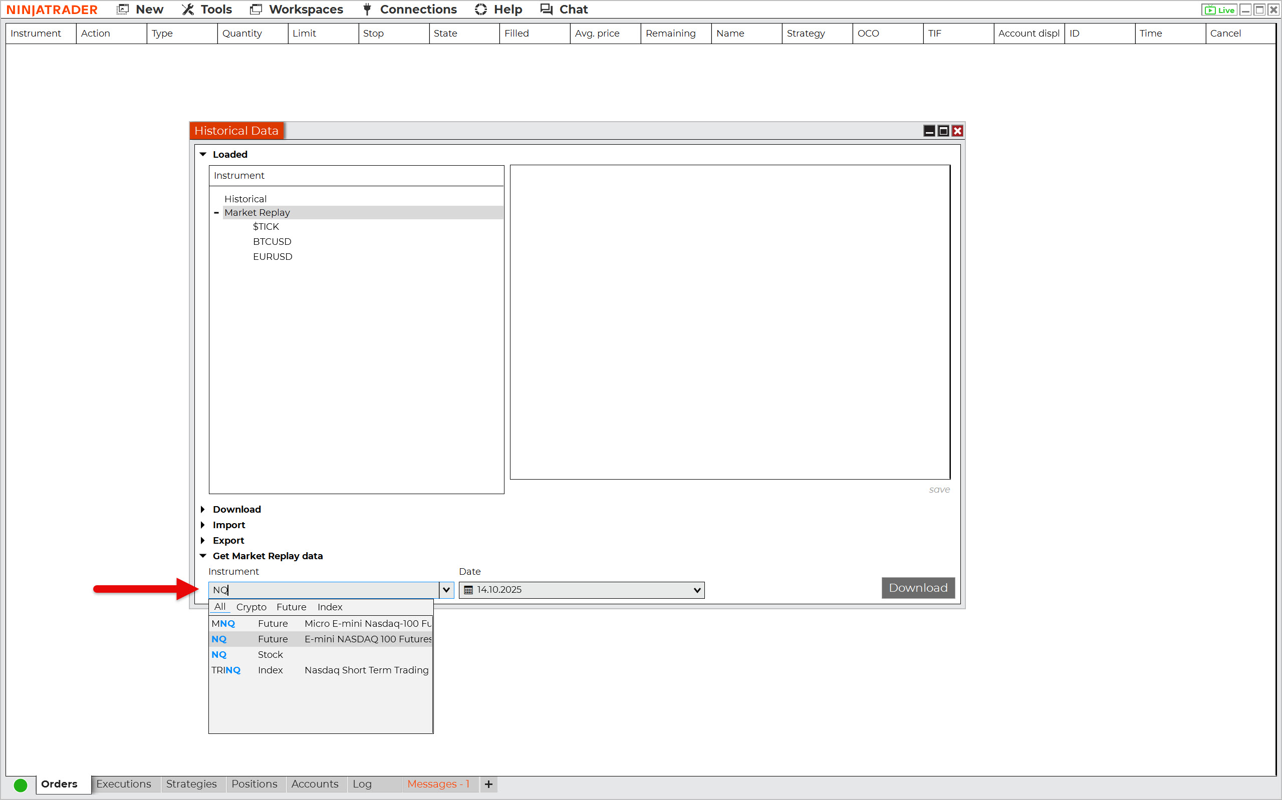 Downloading Market Replay Data via the Built-in Historical Data Downloader