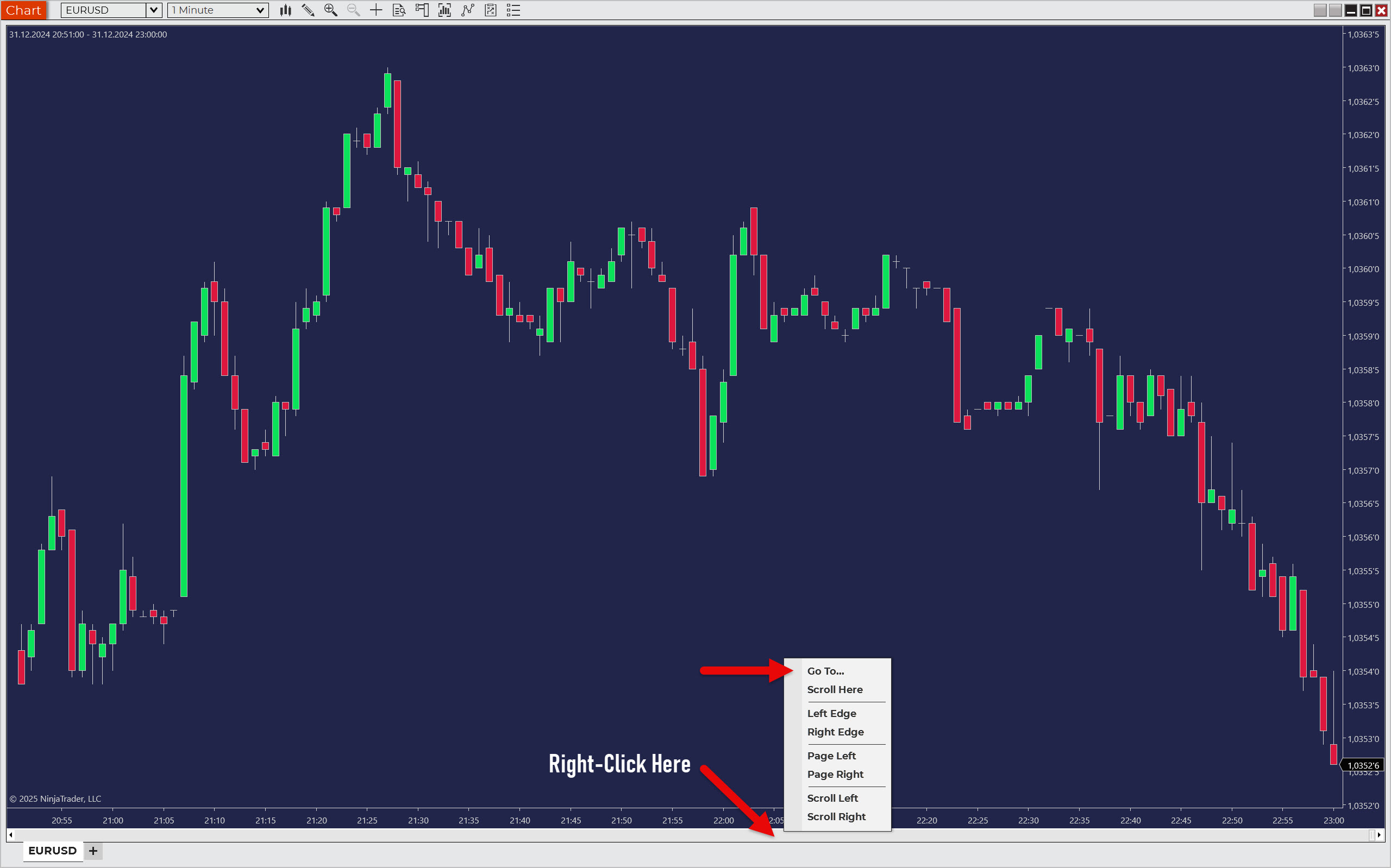 - Move to a specific date and time – Right-click on the scrollbar and select Go To.