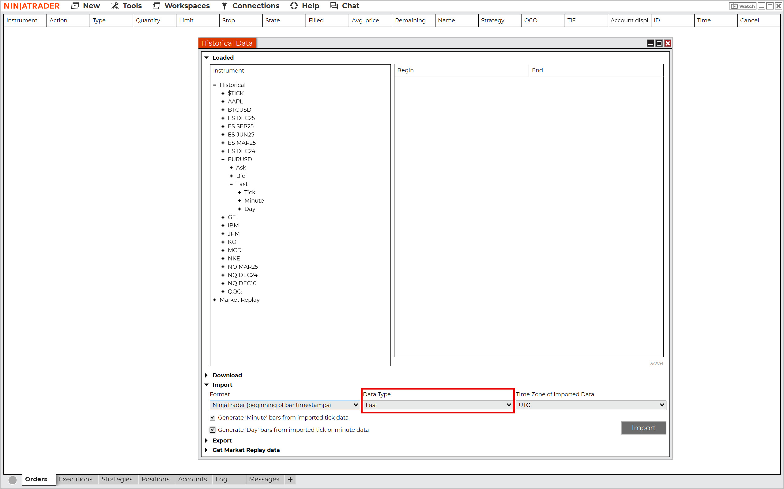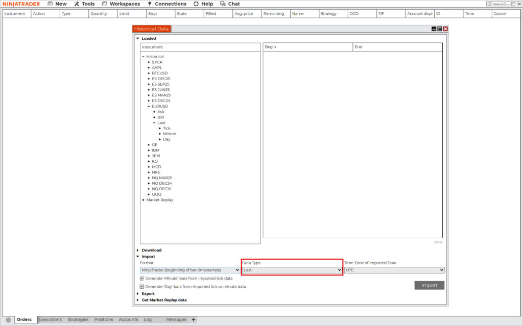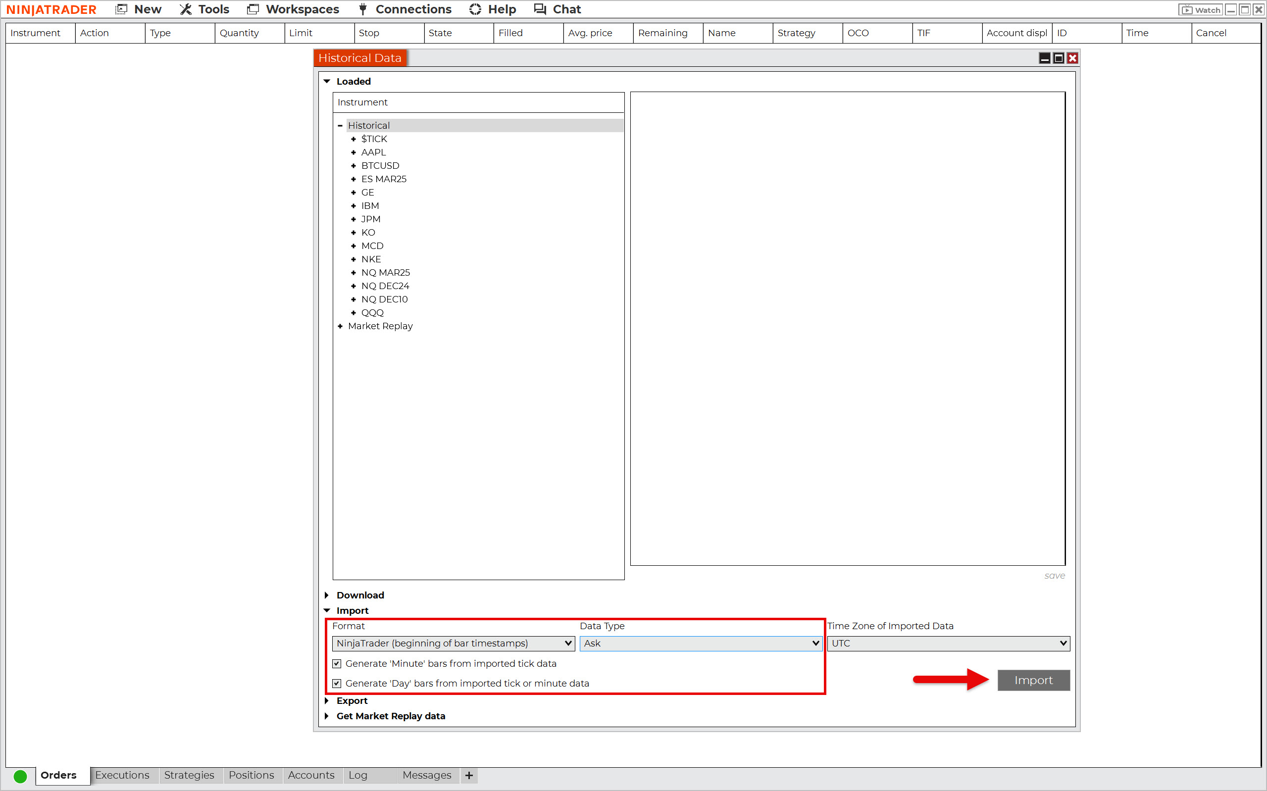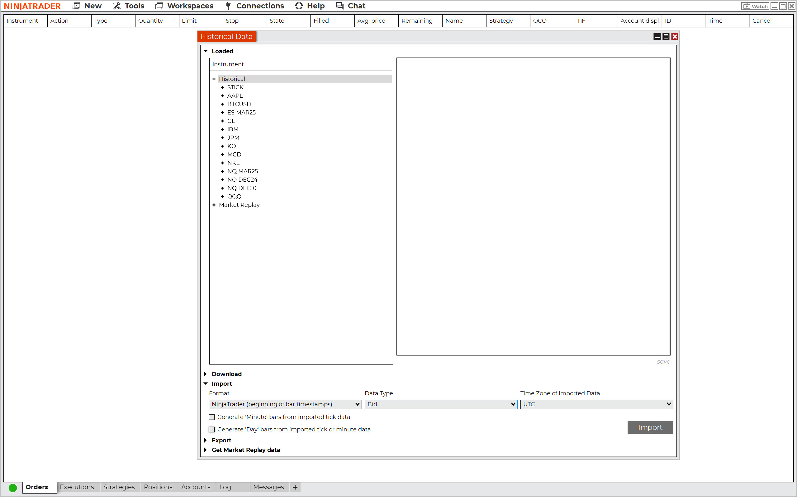 Now that you have historical tick-by-tick data for your backtesting, all you need to do is import it into NinjaTrader.