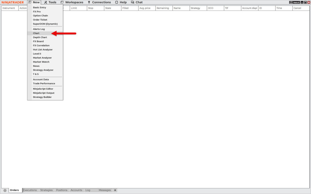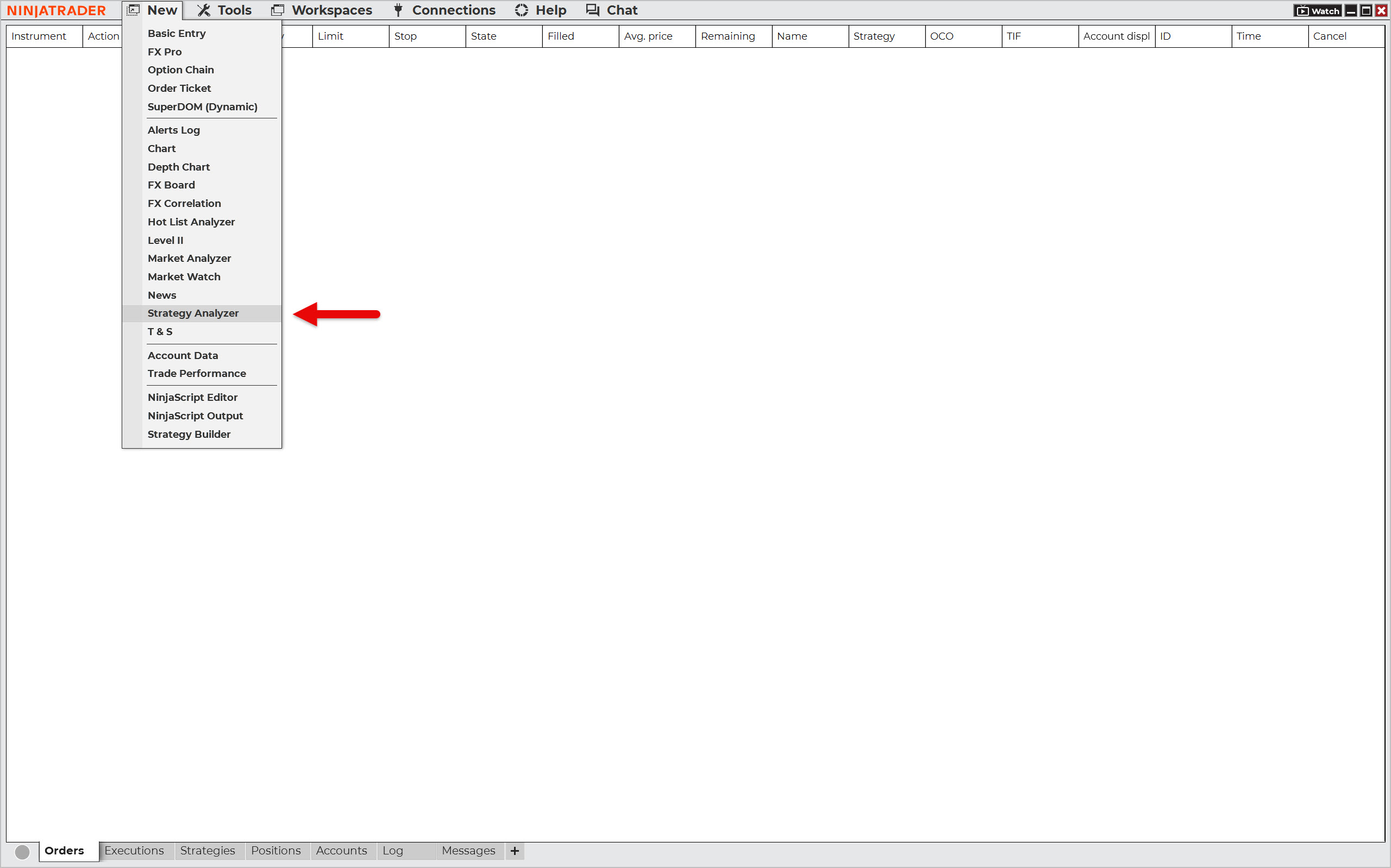 In the NinjaTrader main panel, select New > Strategy Analyzer.
