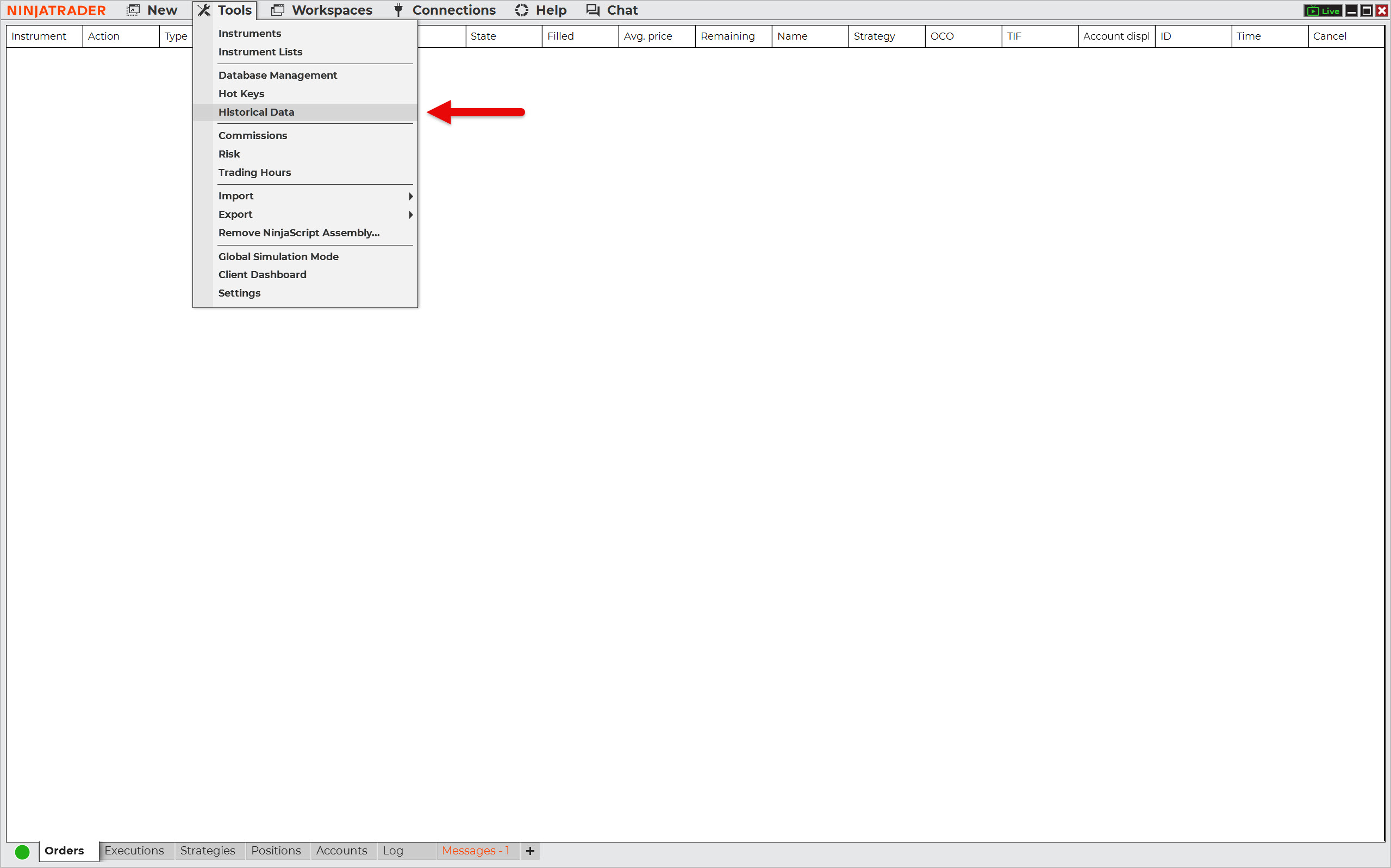 Launch NinjaTrader and select Tools from the main menu, then Historical Data.