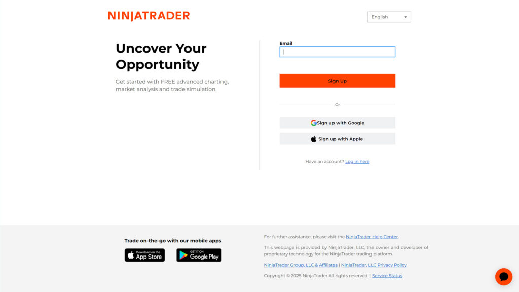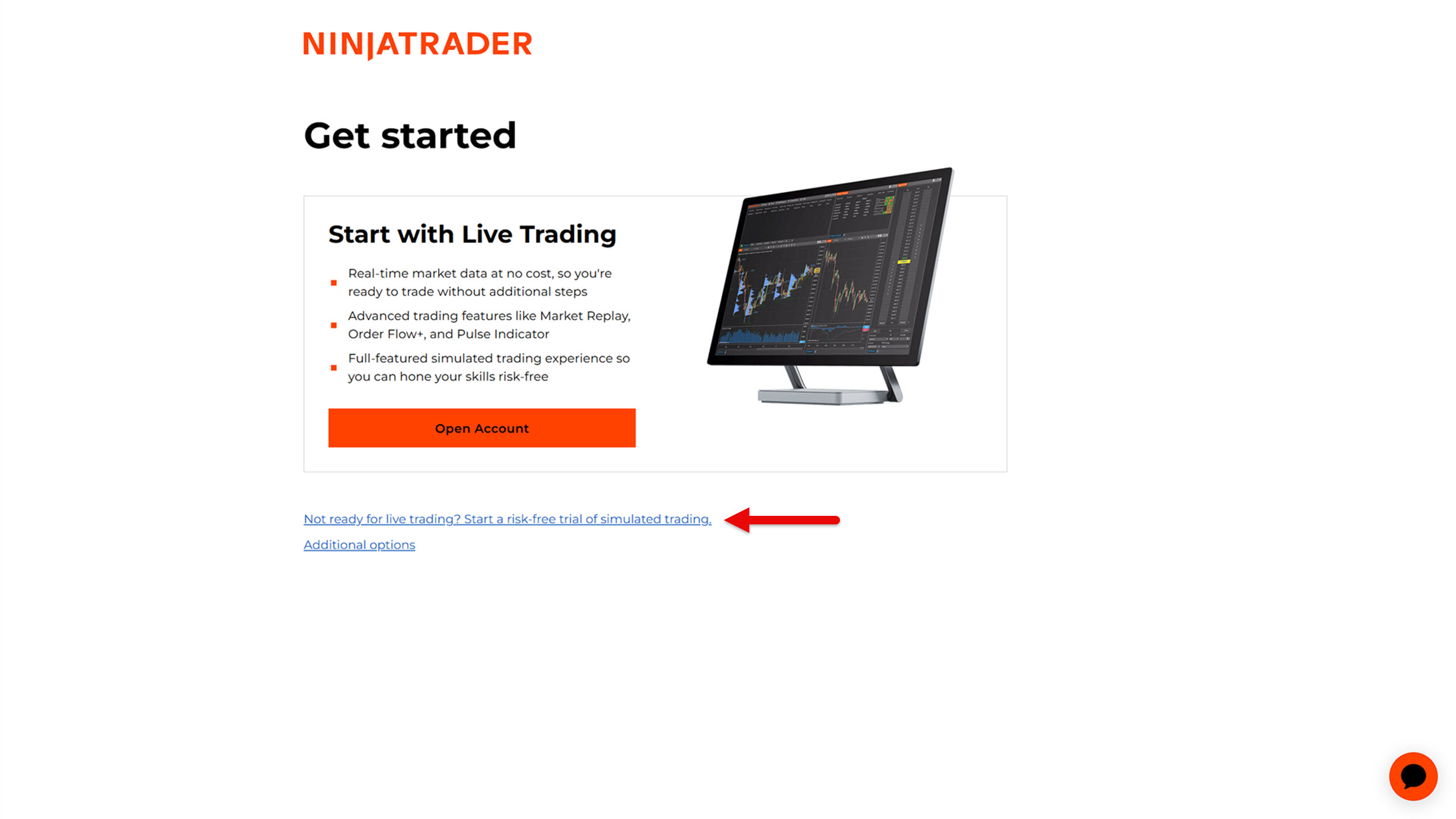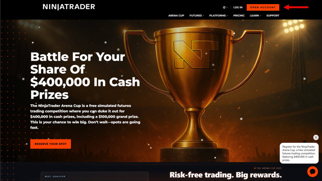 Go to the NinjaTrader website and click on the “Open Account” button.
